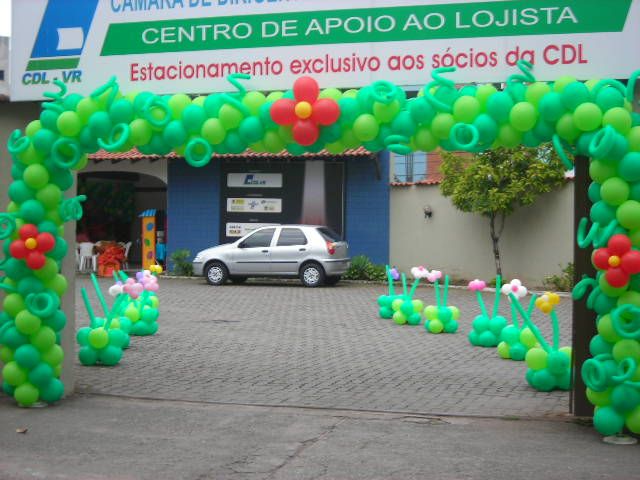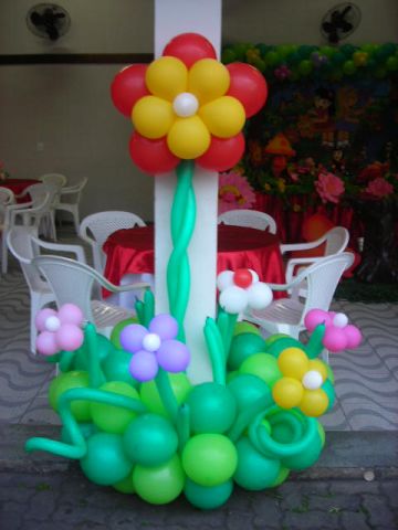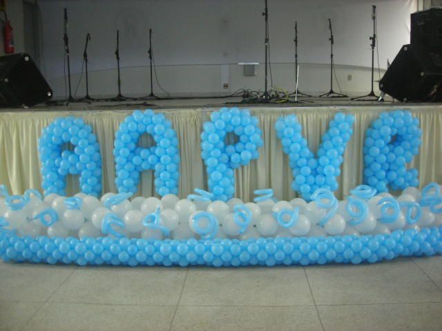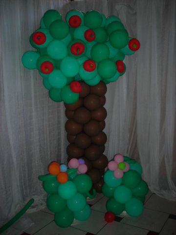 Decoração com bolas e esculturas